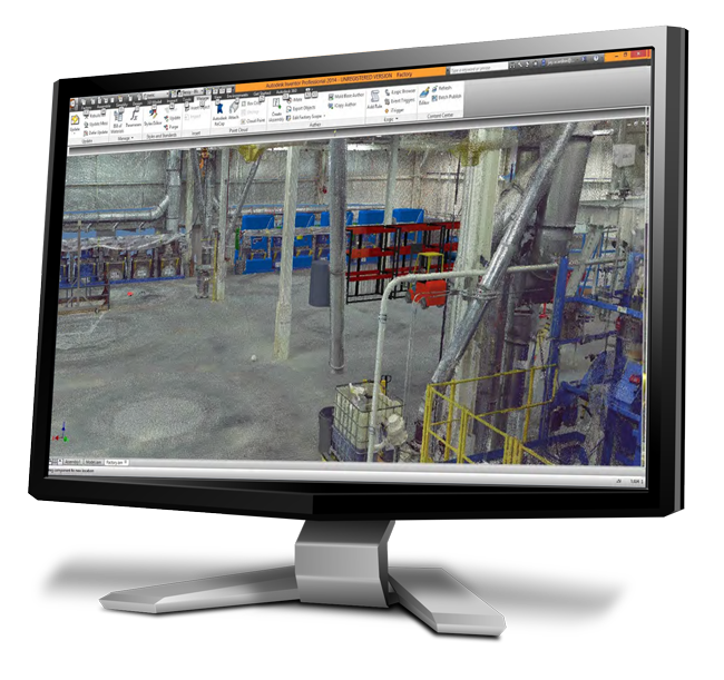 When PrecisionPoint (PPI) is called in to a manufacturing facility, our job is to use our laser scanning solutions to create a 3D reality capture of the facility and its contents. Once the point cloud model is turned over to our client, they can bring it into a solution like the Autodesk Factory Design Suite and use it as a backdrop to help place equipment and create new, more highly efficient product flows.