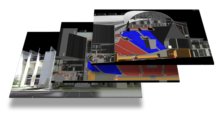 Challenge: The university lacked sufficient as-built drawings for the arena, and thus requested 100% of the facility be scanned and modeled.
